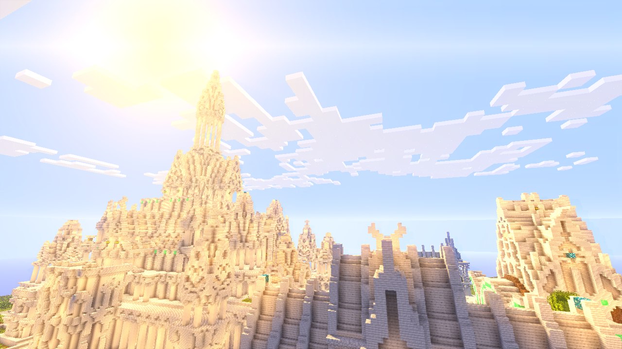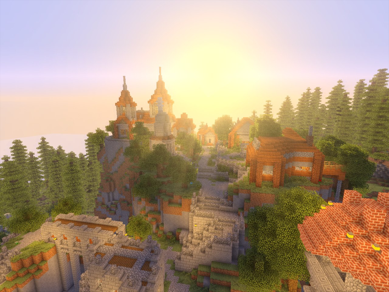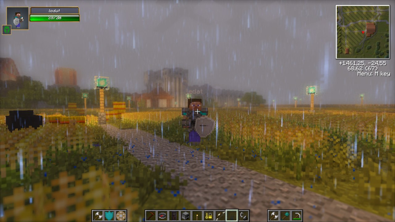 - Обширный мир почти 10 000 на 10 000 кубов, полный городов, замков, деревень и подземелий