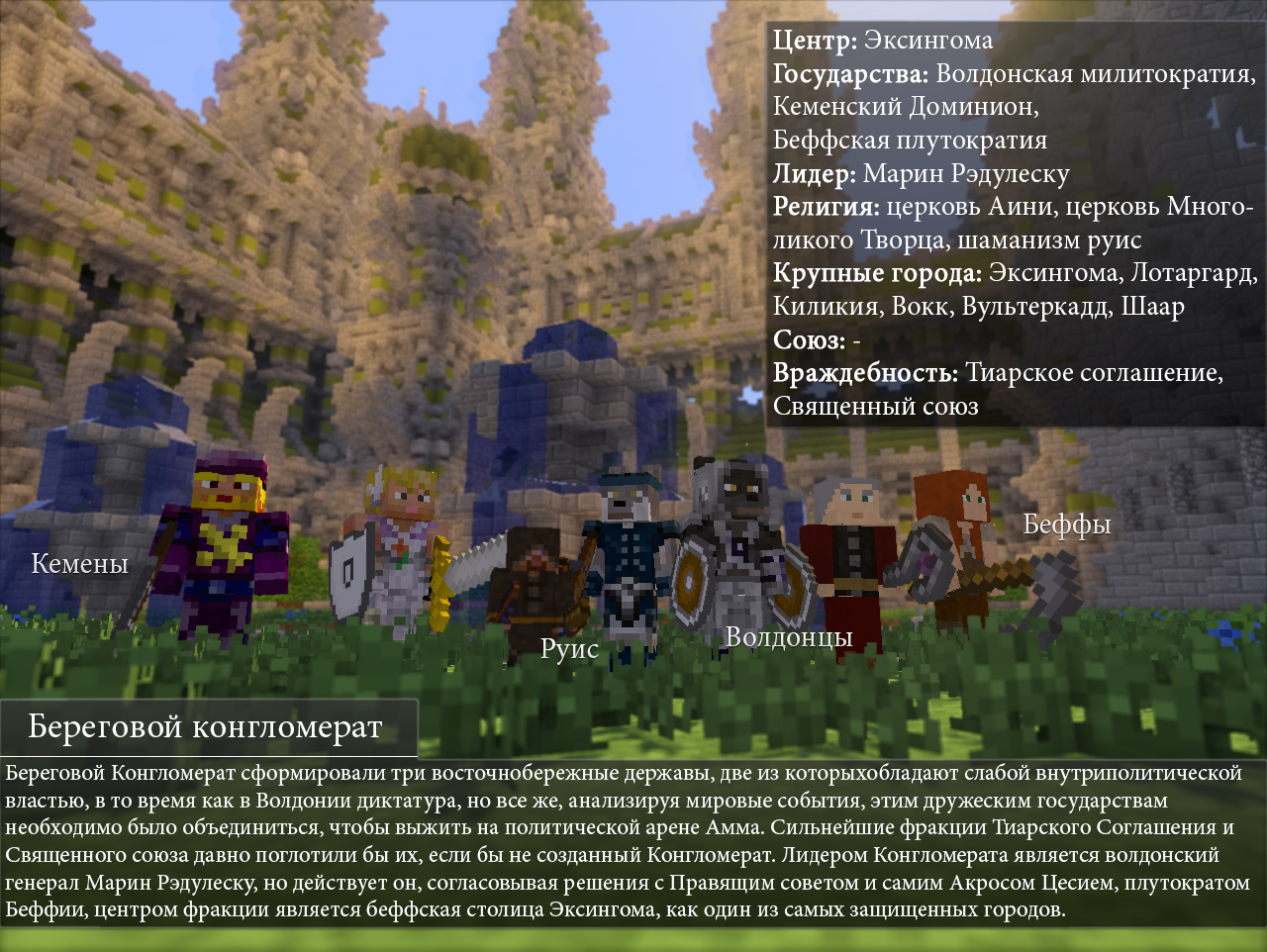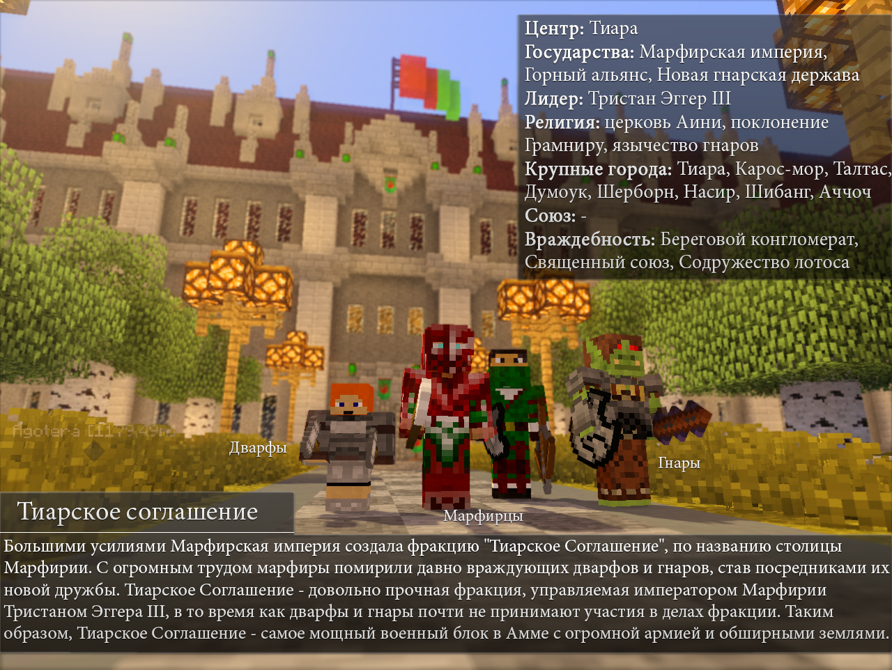 Minecraft RPG сервер "Обитель легенды" - это проект, на котором вас ждет противостояние нескольких фракций в выдуманном мире под названием "Амм", интересный сюжет, крупномасштабные сражения, политика, торговля, приключения и огромный мир со множеством городов, поселений, замков и подземелий.
