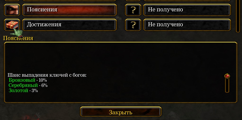 - В панель заданий добавлено описание % шанса выпадения ключей и легендарных скинов с Богов