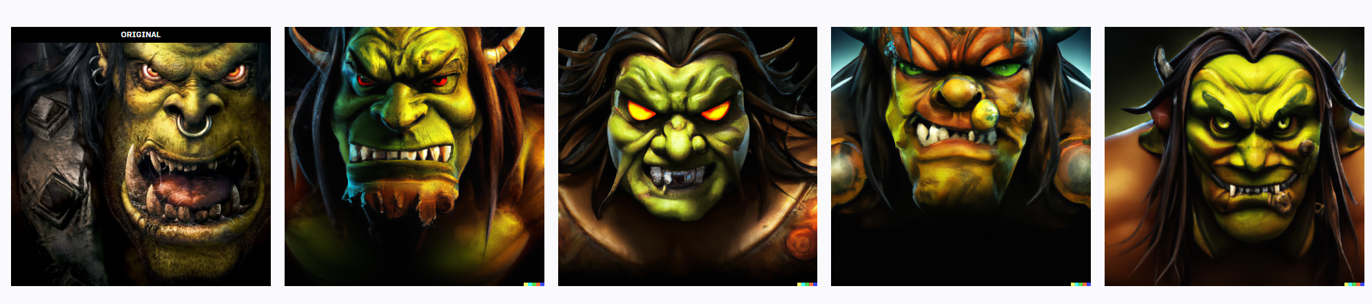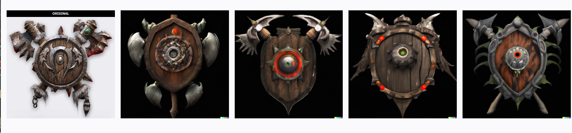 Всё это делается путём загрузки файла и выбора функции "Generate Variations". Некоторые варианты можно использовать сразу же, а других при наличии некоторых навыков можно существенно доработать. Просто берите подобное из WarCraft или любой другой стилистики и делайте вариации.