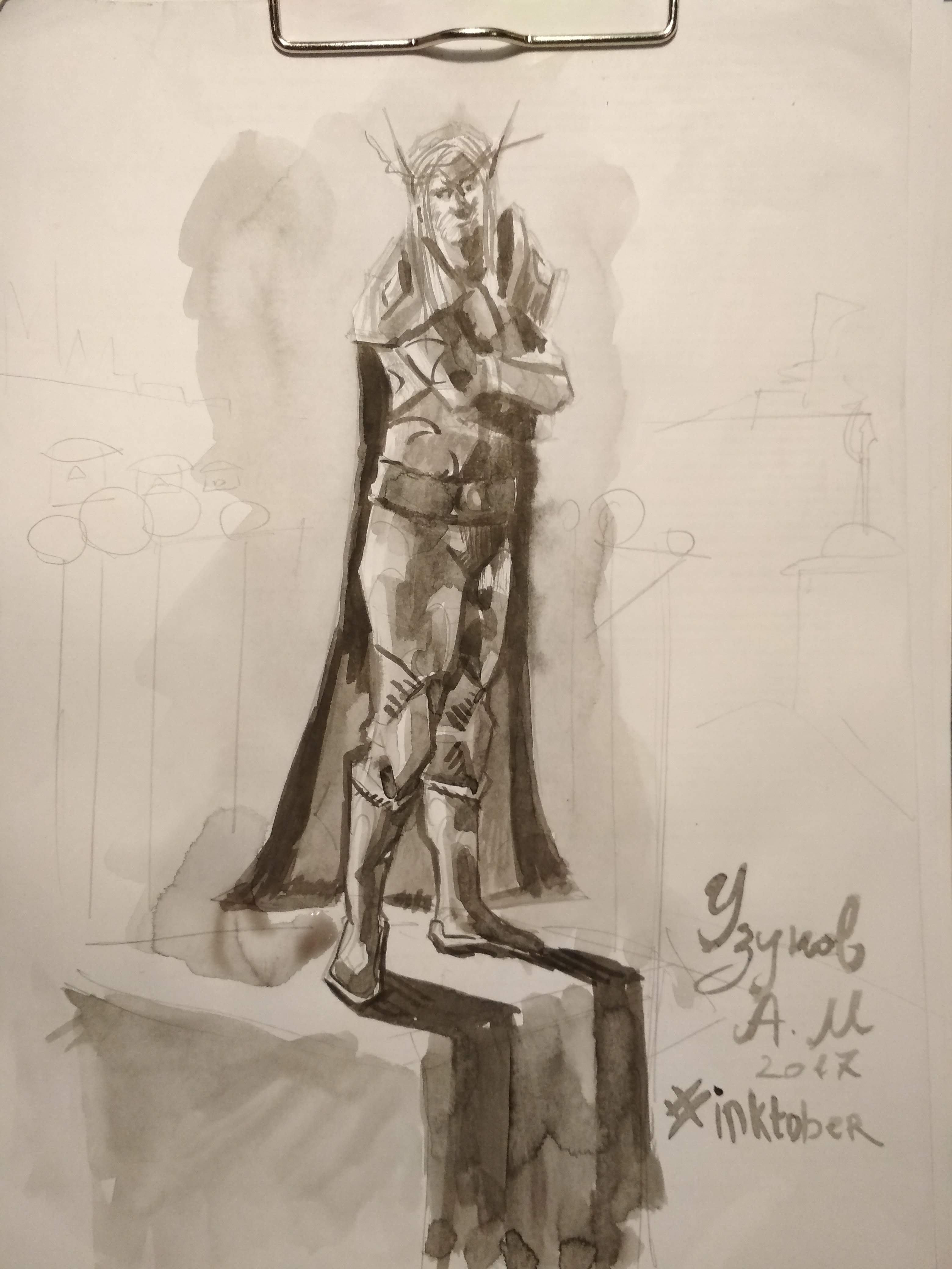 Пару недель назад я взял в руки брашпен и, несмотря на робость поначалу, рисунок ею изменил меня. Я хотел исследовать этот инструмент больше. Я хотел быть уверенным с ним. Поэтому я купил несколько кисточек и новенький скетчбук и посвятил каждый день некоторое время на самосовершенствование в искусстве рисования тушью. Инктобер это просто предлог поделиться этим приключением со всеми вами.