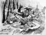 "INKtober" (туштябрь?) — это месяц признательности искусству рисования тушью и тем, кто ей рисует. Дабы отпраздновать, я буду постить один рисунок тушью в день в течение всего месяца. Никаких карандашей, никакой акварели, никакого Фотошопа, просто чистая чёрная и белая красота густых чернил на белоснежной бумаге. Рисование тушью означает обязательство. Здесь нет колебаний, какую карандашную линию выбрать, нет метаний по поводу градаций, нет осторожничанья с цветом. Когда вы рисуете, вам лучше знать, что вы делаете. Это чёрный и белый. Правда или ложь. Включить или выключить. И в этом суть ИнкТобера.