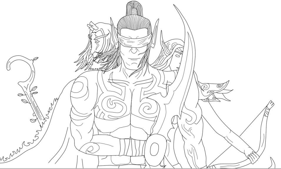 Под впечатлением от просмотренной машинимы War of the Ancients решил нарисовать молодого Иллидана. По задумке это Иллидан времен Войны древних. У него течет кровь из глаз и дым от татух :d Он только что получил "дар" Саргераса, и по двум сторонам должны стоять Малфурион и Тиренд, отворачиваясь от него.