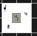 Синий пунктир - маршрут игрока в поиске зацепок и цели