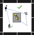 Агент на старте имеет малую область влияния, (белая область), и с развитием персонажа увеличивает свою юрисдикцию. Тут два зайца - последовательность прогресса игрока и увеличение сложности уровней за счёт увеличения области поиска.