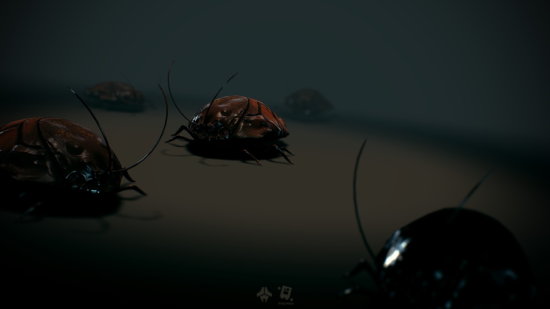 Лучше человек, который почти "вмурован" в позе людей из Последний день Помпеи в огромный инкубатор жуков. Ноги деформировались и отчасти передвижение осуществляют жуки. Сам вмурованный человеческий корпус выглядит как аллюзия на инкубатор чужих, только человек весь покрыт слизью, а вместо рта у него щупальце (можно не одно) как в спрута в Подъем с глубины, которое осуществляет поглощение жертвы и переработку ее в питательные вещества. За спиной огромный мешок-инкубатор (в который врос человек и из которого вылупляются жуки).