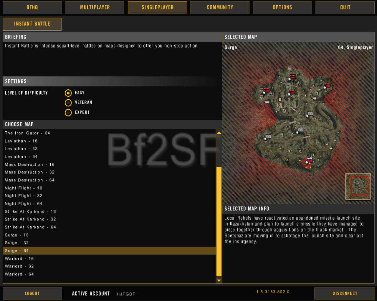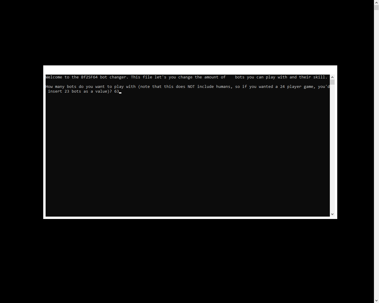 Помимо этого у вас будет доступен - BF2SF64 Botchanger. Он поможет вам добавить любое количество ботов, покуда движок игры не вылетит. А также уровень сложности ботов.