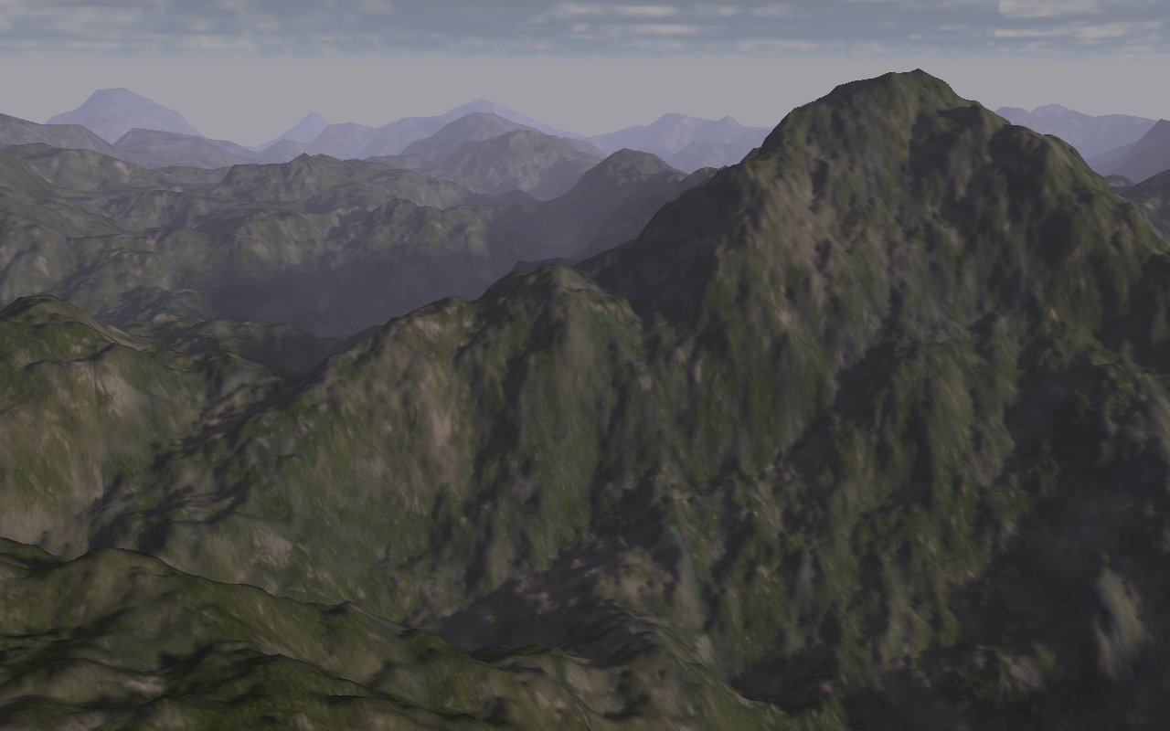 Так как разработка началась совсем недавно, то движок находится только на ранней стадии разработки. Однако мы можем предоставить пару скриншотов и в скором времени выложить видео, демонстрирующее первую технологию - Terrain Seamless LOD. В данный момент работа идет только над графической частью движка. Физика и прочее будет разрабатываться после того, как будет внедрено все основные графического ядра.