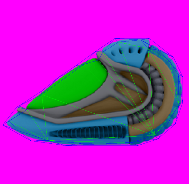 Как я уже отмечал, создавать полигональные модели для каждой текстуры слишком затратно, но видя как мой телефон тормозит на уровне с кучей облаков решил что надо что-то делать. Я написал утилиту, которая автоматически строит модели для каждого спрайта. Я сомневался что утилита получится, но результат получился таким, на какой я надеялся. Вот несколько примеров моделей, которые построила утилита