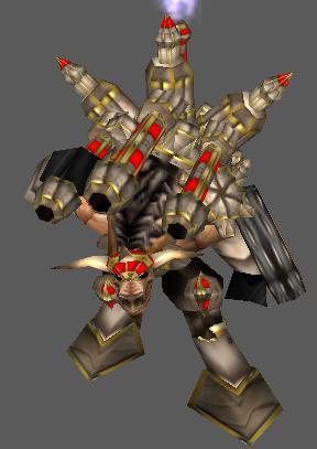 Таурен-Киборг. Вооружен системой залпового огня "Мянг", а так же лазер-копытами и шок-мечом.