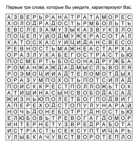 Во-вторых, у тестов никогда нет заглавий а-ля "ты есть то, что ты тут увидишь". Ключ к тесту всегда идёт отдельно.