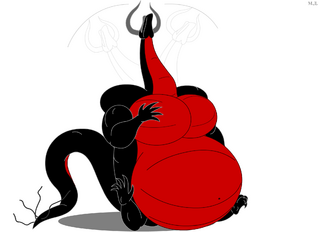 Быстрый скетч. Громозак, добрый дракон-пожиратель магии, снова наелся магической энергии и получает удовольствие от того, что стал очень толстым. :3