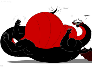 Стометровый добрый дракон Громозак машет лапой своим друзьям, после того как поглотил высший кристалл маны и раздулся. :3 Теперь Громозак стал ещё счастливее и сильнее.