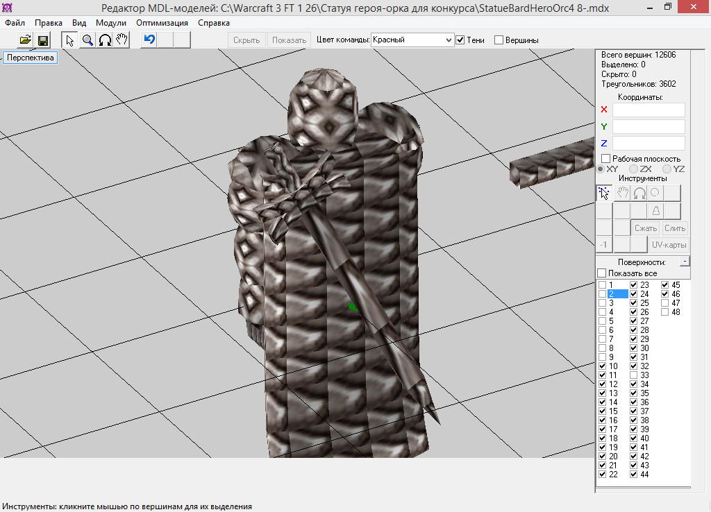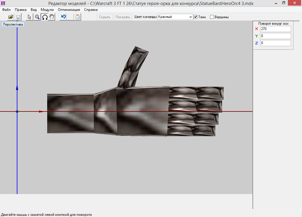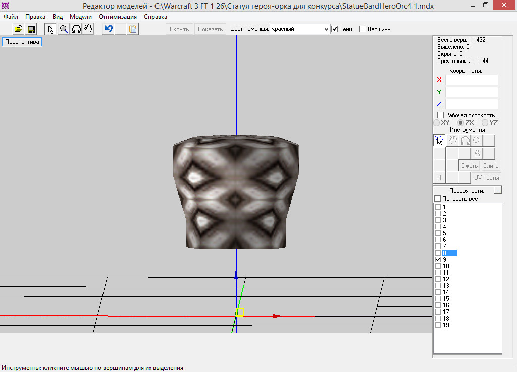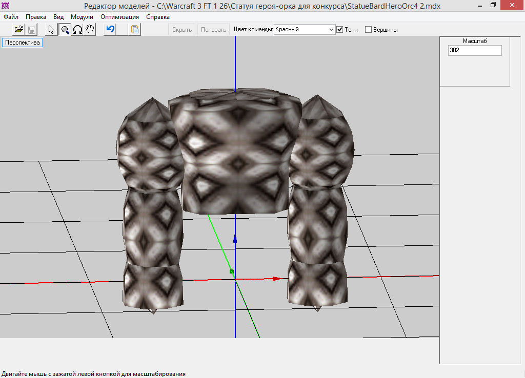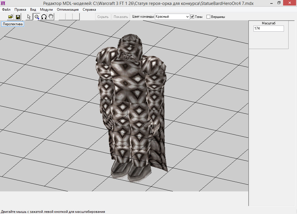 Эта статуя будет посвящена необычному герою орков - орку-барду, частично ставшему демоном. В дальнейшем эта модель будет использоваться в моём проекте. Модель сделана для конкурса XGM "Деревня орков". Используемые текстуры - стандартные.