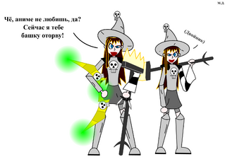 Огненный шар - Все ученицы и учителя университета светлой магии (Где и учится Калко) обладают способностью атаковать огненными магическими снарядами - ученики умеют стрелять огненными стрелами (Маленький огненный шар, размером с ладонь), учителя университета кидают настоящие огненные шары. Калко является злым главным героем аниме (Добрых героев аниме в мире Анимувёрса нет. Как и в подавляющем большинстве аниме и манги) и Мэри Сью, поэтому даже в статусе ученицы, Калко может атаковать огненными шарами, а так же объединять два своих огненных шара в один, чтобы нанести большой урон противникам и сжечь их заживо. Однако, Калко гораздо удобнее сжигать противников магическими стрелами лука аниме-героя, поэтому Калко редко применяет заклинание "Огненный шар".