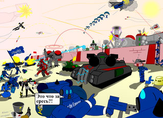 Рисунок большой батальной сцены, которая будет присутствовать в моей новой повести-пародии, которую я сейчас пишу.