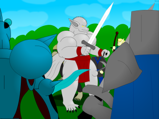 Дорисовал наконец, свой рисунок, который, одновременно, является обложкой будущей RPG-игры "Защитник монстров", в сеттинге неклассического фантези, так как в этой игре надо будет спасать добрых монстров от армии злых людей.