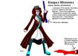 Алкомеля Айнискила - главы мироспасительной организации Кронох, на фоне стального зала,