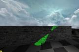 }Результат действия данного шейдера можно увидеть на скриншоте слева. На нем изображены 3 источника освещения данного типа. Два расположены на стене, имеют зеленый цвет, а так же смотрят в противоположные стороны. Так же они еще и вращаются вокруг оси Z. Получается что-то типа сирены =). В общем выглядит достаточно забавно. Еще один источник направлен на стену и дает слегка сероватое освещение. Его направление регулируется с помощью стрелок на клавиатуре, так же забавно смотрится.