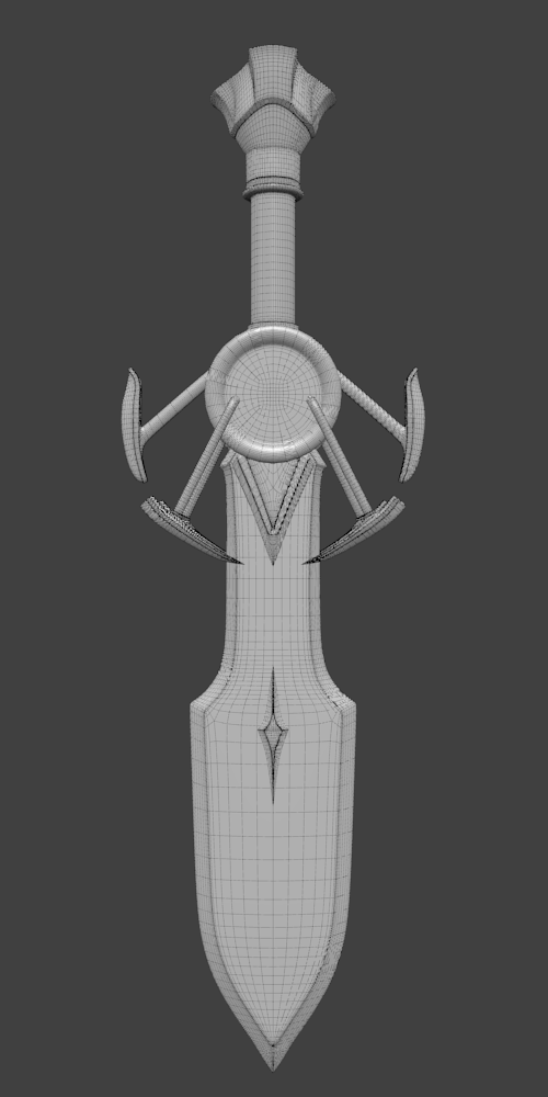 В большинстве частей - да, но на гарде и навершии несколько мелких отростков, их без геометрии не сделаешь, и все стыки придется вдумчиво моделировать под DC и AO, иначе получится не очень... У меня лично не получается делать такие вещи и красиво, и малым количеством поликов, вот и хочу посмотреть как Андреич выкрутится...