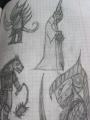 Лист 2: Слева направо: что-то типа смеси наги и протосса(жаль места для полного не хватило, хотел ему руки из лазеров сделать), Даззл(срисовывал, посох свой сделал), адский маргол-троглодит(ужасная смесь, самого радует как нарисовал), тёмный рыцарь(не бэтмен, а что-то типа мёртвого прислужника).