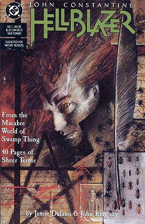 Оригинальное название комикса - Hellblazer, то есть "Посланник Ада"(вообще сначала хотели назвать "Hellraiser"("Восставший из Ада", но на тот момент уже существовал фильм ужасов под этим названием). Комикс сделан в современном стиле и рассказывает историю экзорциста Джона Константина. Изначально комикс издавался издательством DC Comics(с 1988 года), а потом перешёл в руки её дочерней компании - Vertigo(которая кстати выпускала комиксы "V for Vendetta"("V - значит Вендетта") и издаётся по сей день. Вообще Константин впервые появился в комиксах "Swamp Thing"("Болотная тварь"), и так как этот герой очень понравился читателям, то Алан Мур решил сделать отдельную серию комиксов про него. Эта серия комиксов изначально разрабатывает свою собственную вселенную, в которой сверхъестественное и паранормальное не играет большой роли в жизни обычных людей, а супергероев не существует. Константин постоянно пытается защитить себя от прямого нападения, но близкие часто оказываются под угрозой, для того, чтобы нанести вред Константину.