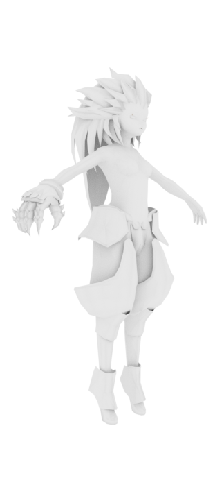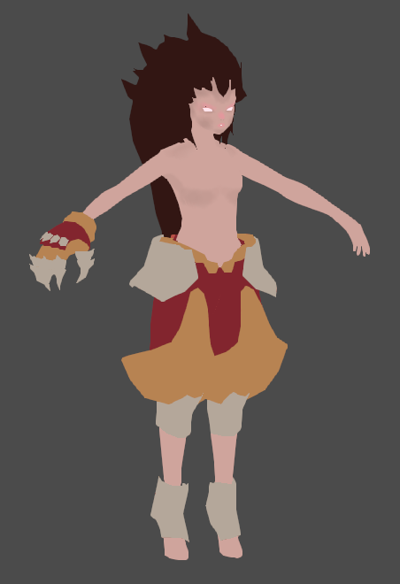 Далее моделинг. На создание лоу-поли меша для данного персонажа мне потребовалось оч. много времени (примерно часов 5), больше всего заняла перчатка и волосы.
