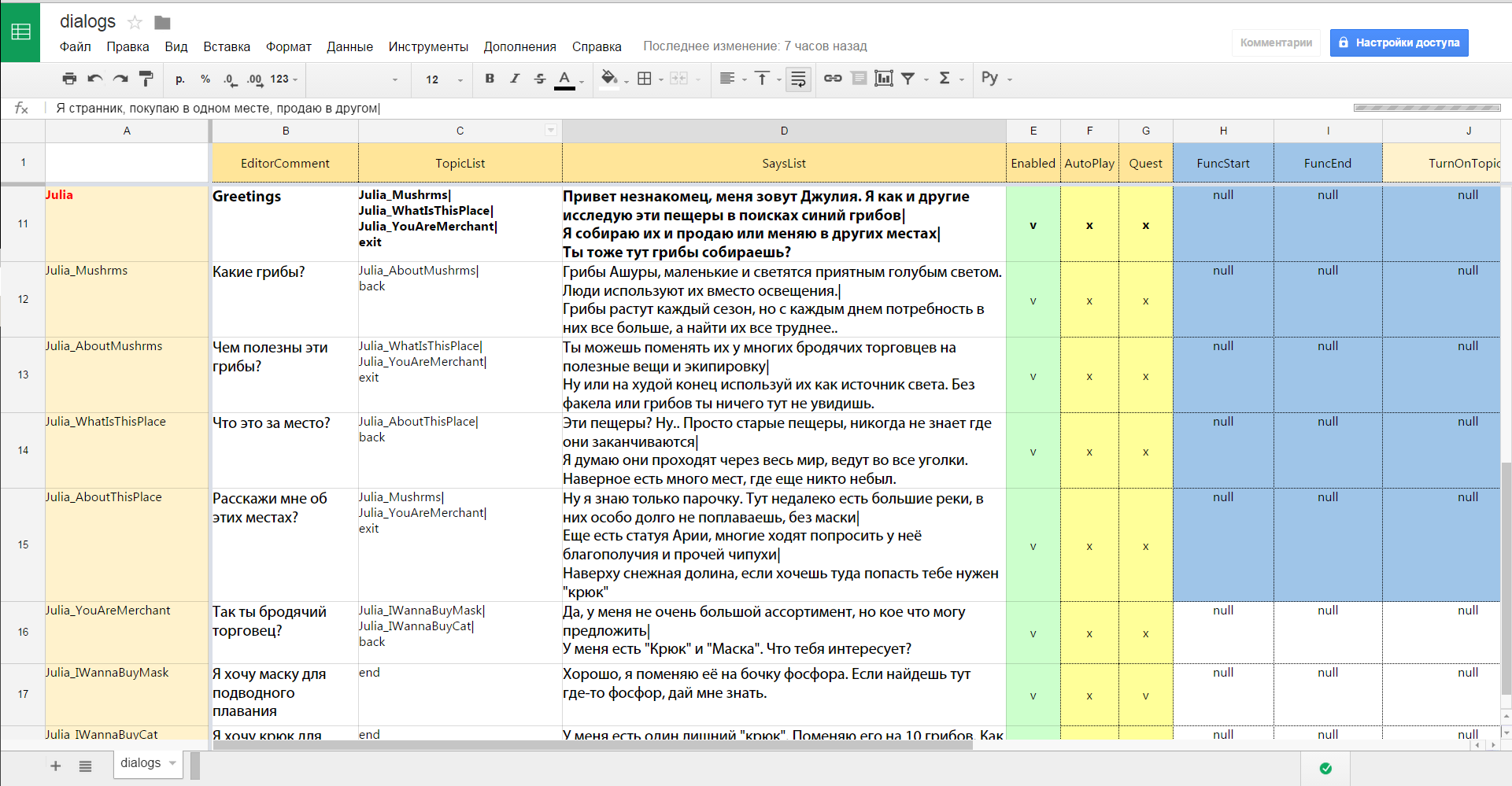 А плюсы писания диалогов в эксели - это моментальных экспорт в игру. Например у меня их экселя диалоги легко экспортировались в csv,