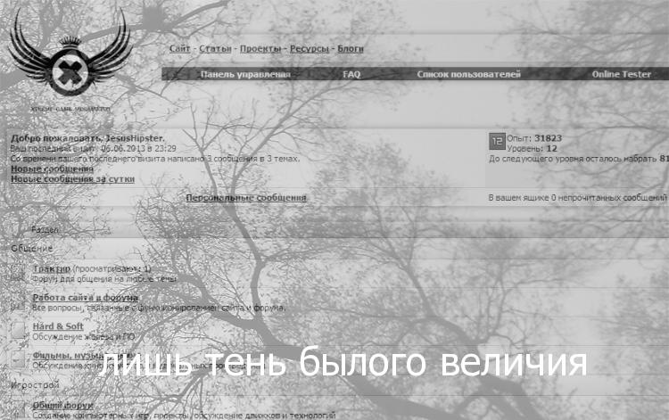 Чувствую, что чего-то сверхъестественного здесь не будет - все будет, как сейчас. Какие темы сейчас, такие и тогда будут. Сайт застынет во времени. Тимур, как сказать... Хеллкор тоже забил на это дело. У него там свои какие-то проблемы. Он, конечно, что иногда поправляет - но, честно, основные технические проблемы на сайте как были, так и остались. Нам нужен человек, который сделает полноценный доработанный сайт (этот же, просто доработанный). А такого человека мы найдем, если мы ему забашляем. Вот и выходит вопрос, который я уже давно долблю: нужно переходить на полукоммерческую основу.