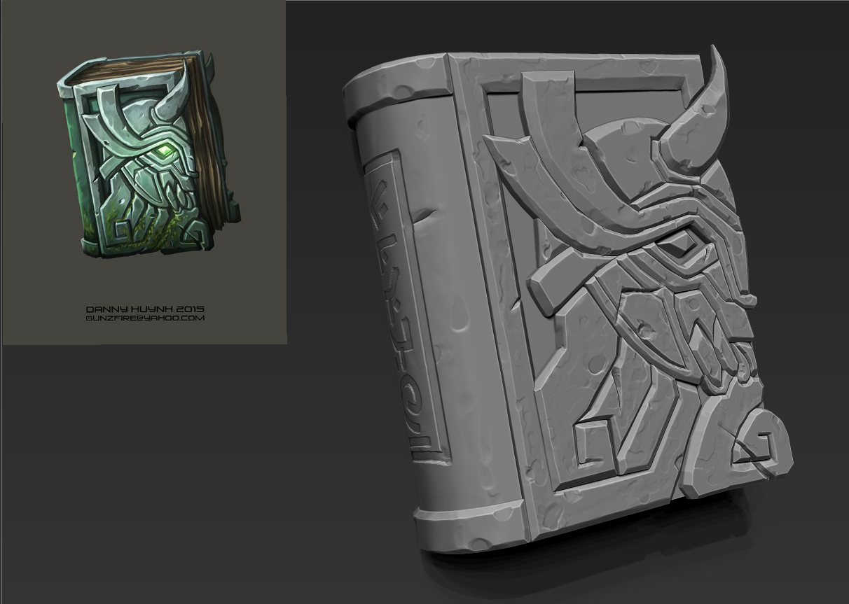 У книги правый нижний угол слишком большую и глубокую трещину имеет. кусочку облицовки с краю не за что держаться и он отвалится. В концепте лишь царапина, а не глубокая трещина.