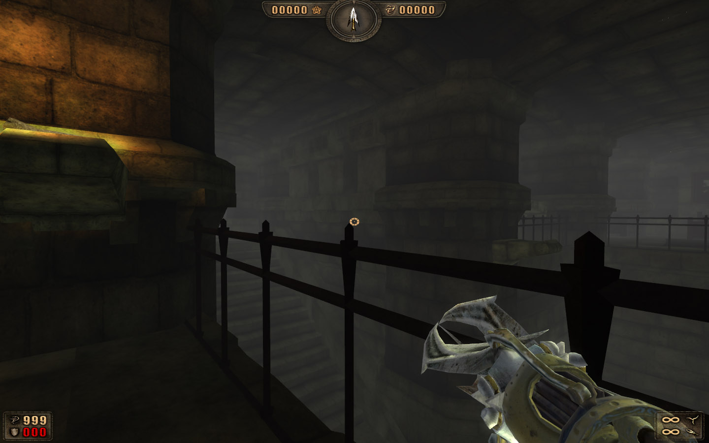 Карта для игры Painkiller. Геометрия и текстуры были выдраны из Обливиона, после чего все было загружено в 3д макс и переведено в нужные форматы. Есть некоторые проблемы с нормалями(из-за них фонарь криво работает и встречаются мелкие дырки). В тот момент я сглупил, нужно было сначала проверить геометрию на целостность, а уже потом начинать рендерить лайтмапы - в результате убил уйму времени на этот самый рендер. Ну, что сделано - то сделано.