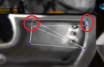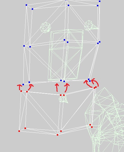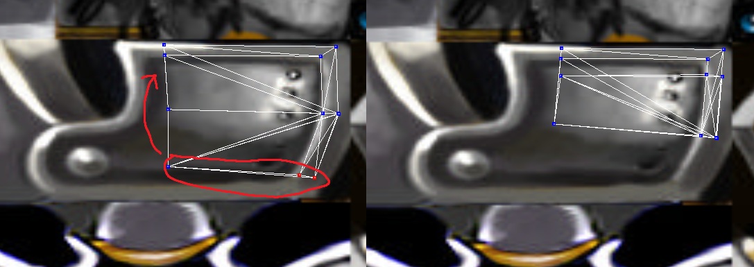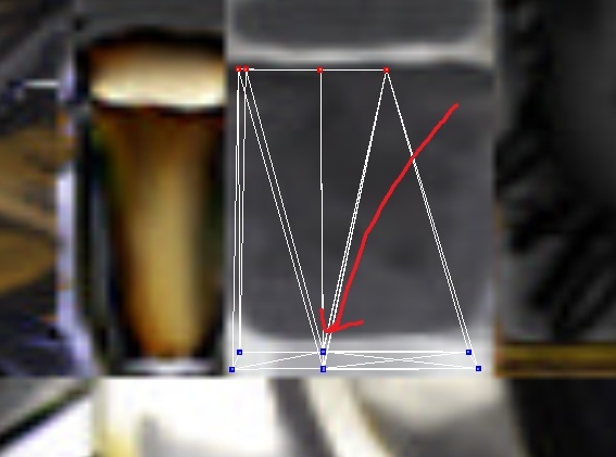 Меняем размер. Выделяем нижние точки и уменьшаем маштаб по оси Y на 80 (1 скрин). Потом выделяем 4 треугольника, где есть не состыковки текстур, в редакторе текстур соединяем точки и получаем (2 скрин). Также выделяем оставшиеся 2 треугольника и в редакторе текстур поднимаем верхнюю точку около заклепок чуть выше. Получаем (3 скрин). Ровняем точки так, чтобы сбоку было выглядело так, как на 4 скрине.