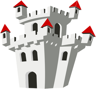 - Замок, который состоит из защитной линии стен и двух башен, входа и площади с фонтаном, жилой зоны, административного здания, на крыше которого происходит ритуал вызова телепорта для эвакуации.