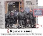 С одной стороны, мы имеем автономную республику Крым, которую явно не устраивает новоиспеченная ситуация в Западной Украине. И к которой присоединяются все больше военных единиц, подчиняющихся в свое время всей Украине (контр-адмирал Денис Березовский, расформированное подразделение "Беркут"). Кстати, по аналогии с 17 г., эта сторона мне напоминает белогвардейцев.