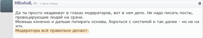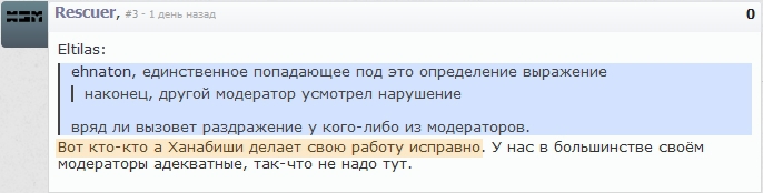 (Ханабиши — модератор Hanabishi). Налицо нарушение правила. Модераторы, однако, бездействовали.