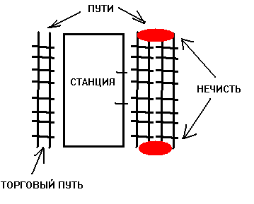 Суть состоит в том, чтобы сдержать волны нечисти, выходящей из тунелей. Карта выглядит как станция метро, а по бокам проходят жд пути. С одного тунеля лезут твари, а по другому проходит торговый путь, на который иногда приезжают торговцы с ништяками :3 (схему в паинте прилагаю).