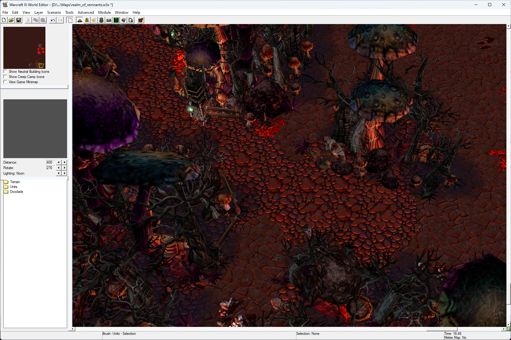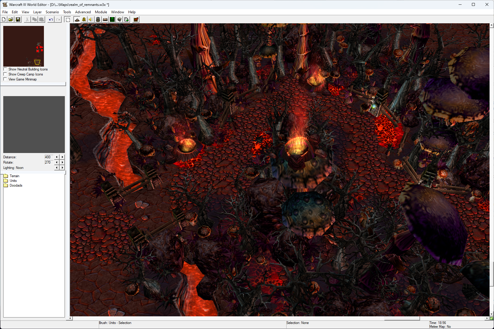 Я быстро пробежал по всем доступным классическим ассетам в поисках того, что можно использовать в строительстве. Мои познания в декорациях и зданиях варкрафта порядочно запылились, поэтому иметь некоторую визуальную подсказку может быть полезно. Получилось примерно это: