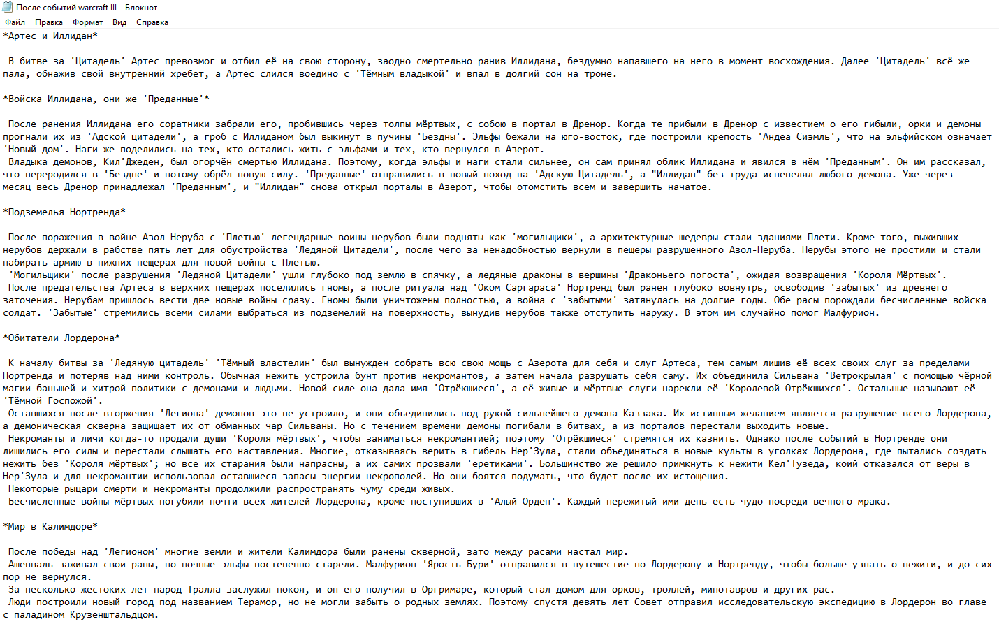 Пусть о истории после warcraft III и повествуется в WOW, но я давно хотел написать фанфик, который был бы связующим звеном между wc3 и wc4. Я как-то даже написал стих о Короле-Личе на 12 строк, но потерял его навсегда. Все события фанфика выдуманы или основаны на событиях из WOW.
