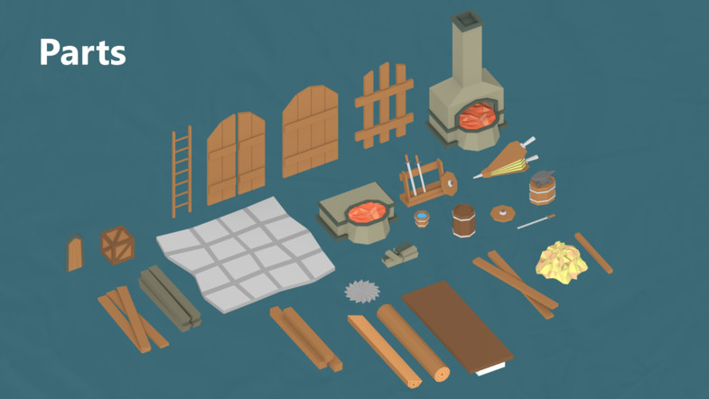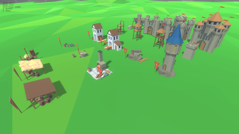 - с текстурой-палитрой (один материал с текстурой (32px) для всех префабов)