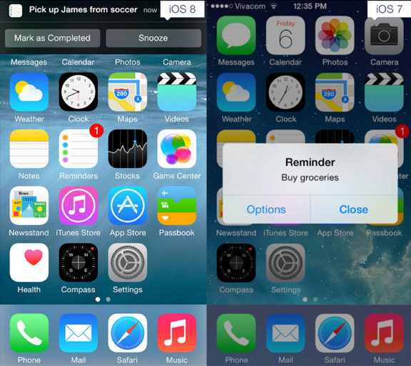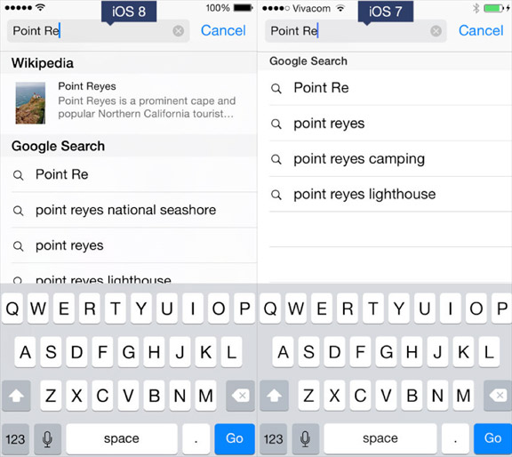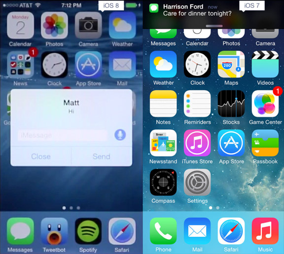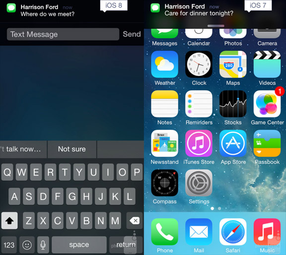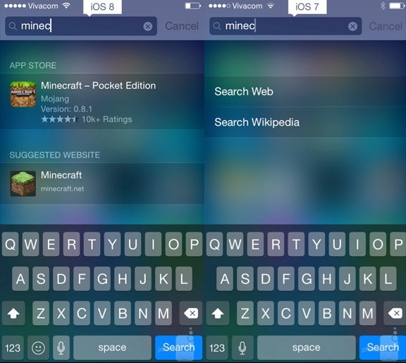 iOS 8 может похвастаться интерактивными уведомлениями, быстрым доступом к важным контактам, возможностью быстрого переключения между входящими сообщениями и черновиками в Mail, а также интеллектуальными подсказками. Расширен функционал технологии Spotlight, которая теперь позволяет выполнять поиск не только на устройстве, но и в Википедии, новостях и на местности вокруг.