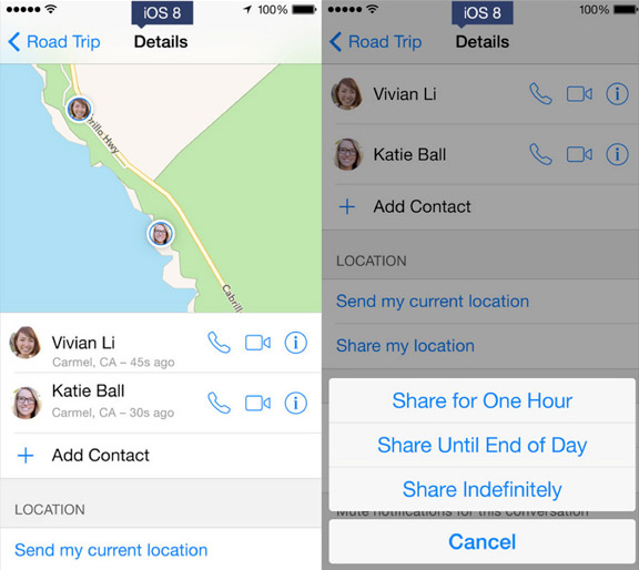 - Обновлен чат iMessage: мессенджер позволяет проще управлять групповыми чатами и передавать контактам либо текущее местоположение, либо «делиться» географическими координатами на протяжении определенного периода времени: в течение часа, до конца дня или бессрочно.