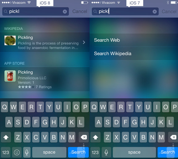- Spotlight осуществляет поиск не только на устройстве, но и в Википедии, новостях и на местности вокруг.