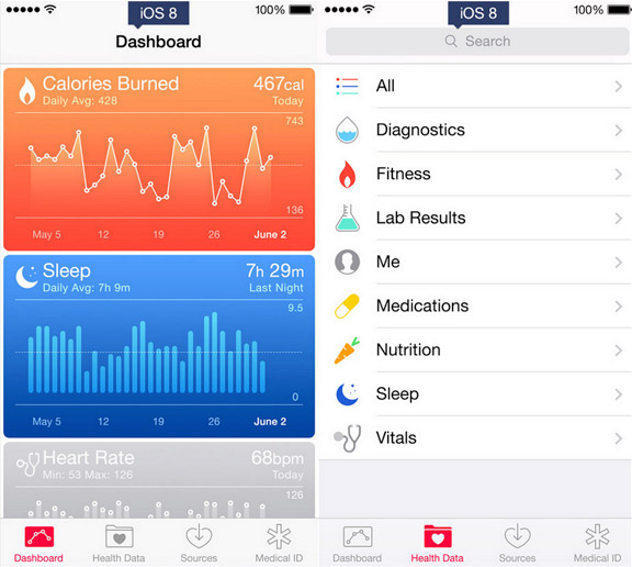- Новое приложение Health, призванное помочь пользователям сфокусироваться на своем здоровье. Занимается сбором и систематизацией данных о кровяном давлении, сердечном ритме и другой статистикой, связанной с биометрией.