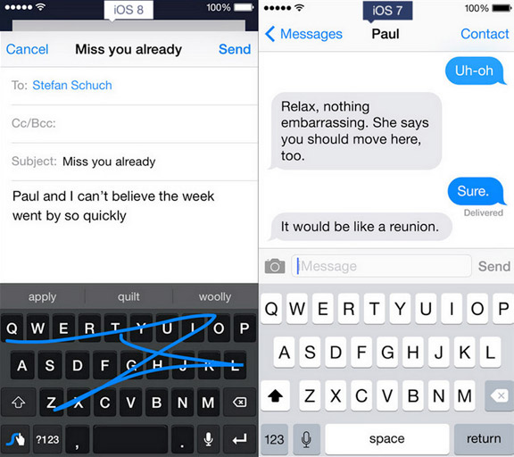 - В iOS 8 не только появилась «умная» клавиатура QuickType, но и поддерживаются клавиатуры от сторонних разработчиков. Создатели популярных Android-решений Swype, Fleksy и SwiftKey уже объявили о подготовке версий для iOS.