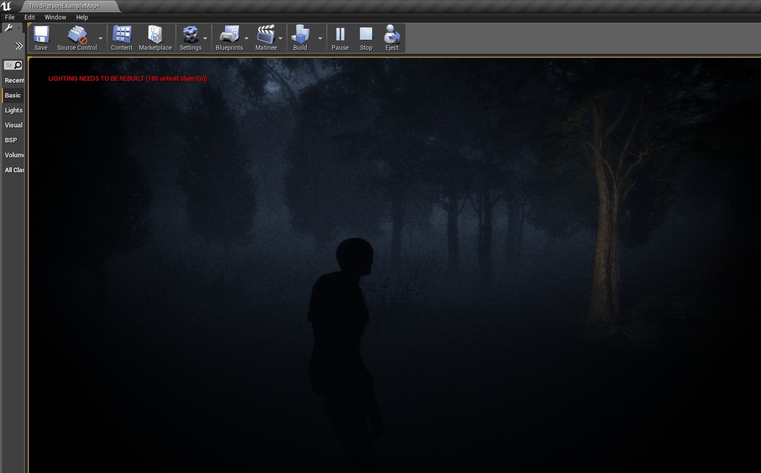 Так же вот думаю какой способ освещения окружающего мира выбрать для игрока, на скринах видно что имеется Spot Light (направленый свет). Но так же в голове крутятся варианты про возможность использования старой лампы (освещение области вокруг персонажа) и флаера которые можно будет кидать, для освещение определённых участков.
