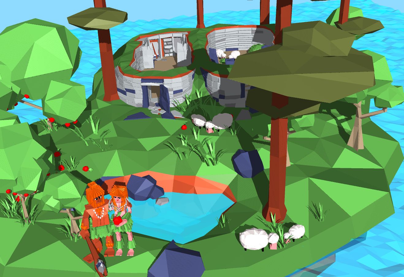 исходя из твоего коммента вопрос тогда так, общий фон типа сцена с островом, АиЕ как на скрине или обычное лоуполи?, кстати, их портреты будут и на заглавном меню проекта.