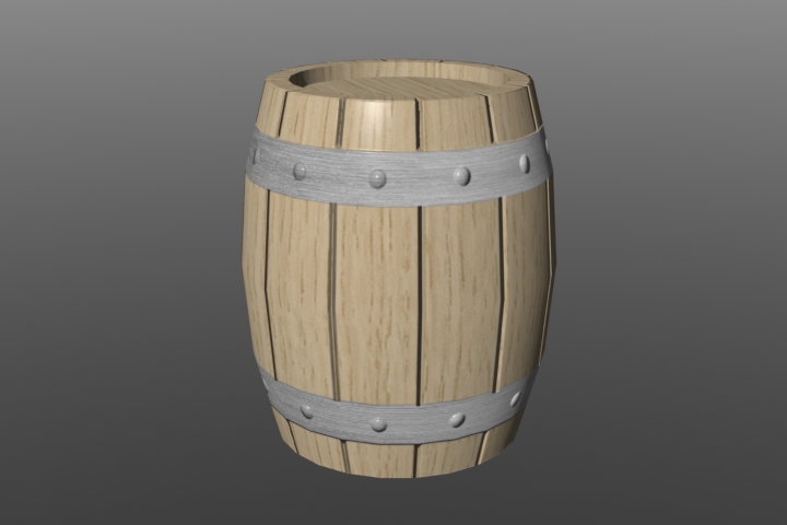 Допиливать систему постройки решительно лень (хотя там не так уж и много работы, но все равно лень), но иногда все же хочется сделать что-то для проекта. Решил набросать пару моделек. Это первая - бочка, будущий элемент декораций шахт (первая локация, где будут происходить события игры). Накидалось за часик (раза четыре все удалялось к чертям и начиналось заново, а на пятый я понял, что у меня неправильная бочка) в все том же Modo.