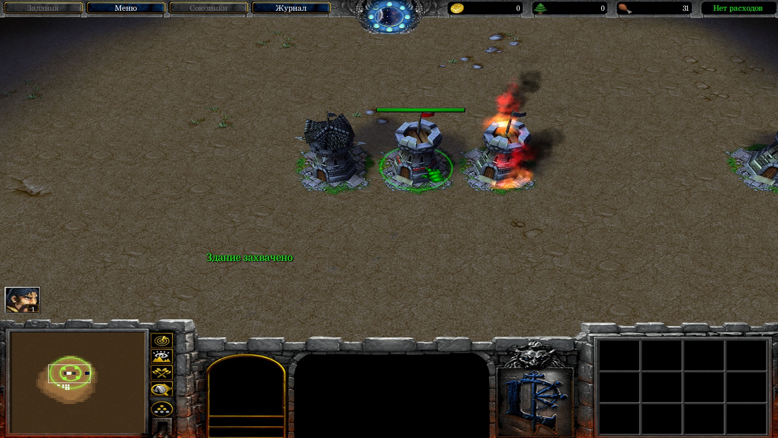 Действие: при использовании способности захвата (или нажатии правой кнопкой мыши на нейтральное здание) стрелок захватывает его. При использовании способности "Выйти из здания", юниты его покидают.