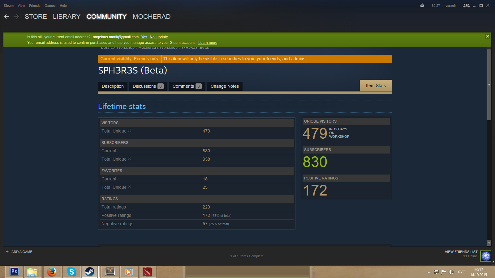 Сегодня я поделюсь информацией как я неудачно сделал публикацию своей игры "Sph3r3s" в Steam WorkShop. (Игра - мод к dota 2 Reborn, так как там моды имеют особое название Custom Games, что и правильно). Информация будет интересна для тех, кто занимается модингом и собирается выложить свою игру, а также и для разработчиков которые хотят опубликовать свою игру на GreenLight, так как в Steam обе системы очень похожие.