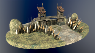 Заканчиваю с текстурами для ворот, работаю как нервишки позволяют. Ограждения думала сделать из булыжников, типа природное препятствие. Папа глянул, предложил колючий кустарник. Есть мысль эти идеи объединить